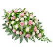 A beautiful casket spray that represents a deep love to a person who will always have a special place in your heart. Pink roses and white carnations are combined with aral leaves, ruscus and eucalyptus leaves to create a wonderful display of your sincere thoughts and prayers.