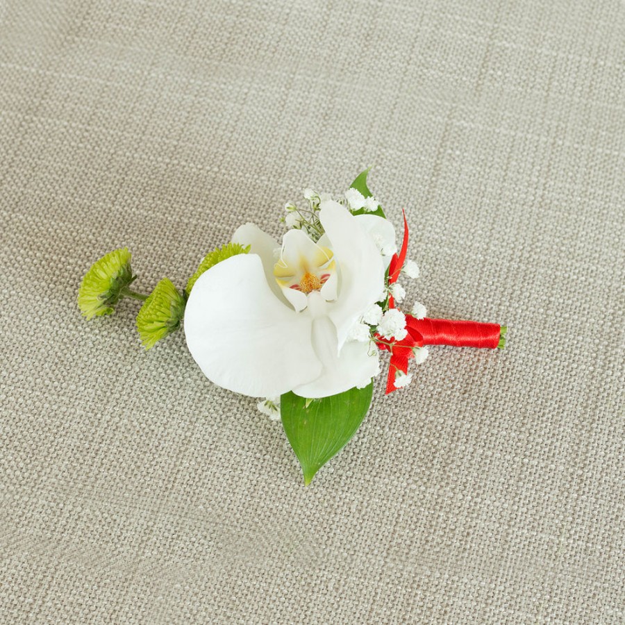 Complete your wedding look with our Orchid & Chrysanthemums Groom Buttonhole, handcrafted by Flowers Gipsy Hill in London. This elegant design pairs a striking white orchid with fresh green mini chrysanthemums and delicate gypsophila, all neatly tied with a rich red ribbon for a refined, modern finish. Perfect for grooms who value style and subtle luxury, this buttonhole brings texture, colour and sophistication to any suit. Each set includes four matching buttonholes, ideal for the groom and groomsmen, ensuring a coordinated and polished bridal party. Our skilled florists carefully select every bloom for freshness and quality, so your flowers look their best from ceremony to reception. Designed to be comfortable and secure to wear, this classic yet contemporary buttonhole complements a wide range of wedding themes, from timeless elegance to modern minimalism. Order online from Flowers Gipsy Hill for reliable local delivery and enjoy beautifully crafted wedding flowers you can trust on your big day.