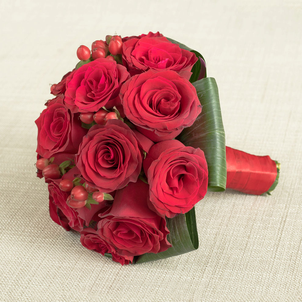 At the heart of this image is a compact dome of red roses, arranged so precisely that the blooms appear to form a single, velvety landscape. Each rose displays a deep, even crimson, with petals curling tightly inwards or beginning to unfurl into soft spirals, giving the bouquet an organic rhythm and hinting at slow, unfolding romance. Tucked among the roses are tiny clusters of red hypericum berries, their polished, bead-like surfaces offering bright, playful accents that break up the sea of petals. A clean ring of dark, glossy leaves forms a collar at the base of the bouquet, offering structure and contrast, while subtly echoing the natural greenery you might see in nearby Gipsy Hill gardens or around Crystal Palace Park. The entire cluster sits in a striking white vase fashioned from intertwining strands that weave in and out of each other, creating an open lattice that is both sculptural and light, like a contemporary basket. This textured container adds a modern edge to the classic red rose design, making the arrangement feel suited to both intimate weddings and stylish home décor in the Gipsy Hill area. On the smooth white surface in front of the vase lie two decorative cream-toned spheres of different sizes, each made from flat wooden ribbons woven into open, airy balls that mirror the vase's pattern and add visual depth. Behind the arrangement is a warm beige background with a fine, cloth-like texture, quiet and neutral so that the reds, whites, and natural tones come forward in gentle contrast. The scene radiates intimacy and consideration, like a carefully chosen wedding centrepiece or anniversary gift ready for same-day delivery across Gipsy Hill. This carefully crafted boutonniere features a single deep pink rose poised against a charcoal or navy lapel, the bloom at that perfect stage where its petals are fully shaped yet still hold a sense of promise. Each velvety petal curls outward in a soft spiral, creating a central whirl of colour that speaks of romance and commitment, ideal for weddings and special occasions throughout Gipsy Hill and nearby Crystal Palace. Framing the rose are airy clusters of white gypsophila, their myriad tiny flowers forming a fine, lace-like border that lightens the composition and brings a gentle, cloud-soft texture. Among these delicate whites, small red berries add depth and vibrancy, their glossy surfaces glinting subtly and lending a modern, cheerful twist to the classic rose design. Slim sprigs of greenery thread through the arrangement, some rising lightly above the rose, others peeking from the sides, giving the boutonniere an organic, hand-gathered feel, as if it had been composed after a stroll through the local Norwood Park. At the base, an artfully curved loop of rich green leaf encircles the stems, its smooth, polished surface reinforcing the clean lines of a well-cut suit. A slim red ribbon wraps the stems tightly, forming a neat, structured finish that echoes the berries' colour and adds a touch of tactile luxury. The mood is refined yet heartfelt, perfectly suited to a groom, usher, or honoured guest making their way up the gentle slopes of Gipsy Hill towards a ceremony, carrying with them this small emblem of joy, care, and thoughtful floristry. This image shows a graceful boutonniere designed around a single cerise-pink rose, its petals full and gently layered, suggesting both softness and strength. The rose is at just the right stage of bloom-open enough to display its swirling heart, yet still tight enough to feel fresh and full of promise. Surrounding it are delicate stems of baby's breath, each tipped with tiny white blossoms that cluster together like light, airy clouds, giving the design a sense of lightness. Adding contrast and a hint of playful boldness, plump red hypericum berries sit snugly amongst the white and pink, their smooth, shiny surfaces catching the light. The whole composition is cupped by broad, glossy green leaves, folded and wrapped to provide a structured frame, while a few slender blades of grass curve outward to lend movement and a slightly whimsical touch. At the base, a red satin ribbon is wrapped carefully around the stems, binding them into a neat, elegant column that would sit cleanly against the fabric of a suit or jacket. The boutonniere rests on a soft, pale background with a subtle woven texture, which allows the vibrant colours to stand out clearly in the gentle daylight. One can imagine this being prepared in a Gipsy Hill flower shop early in the day, ready for delivery to a wedding near Central Hill or a celebration with views across Crystal Palace. The piece feels intimate and heartfelt, a compact yet expressive floral accent made to mark a meaningful occasion. In this detailed four-panel collage, a unified story of red rose wedding flowers unfolds, as if designed for a stylish ceremony and reception tucked away near Gipsy Hill station. The top-left image captures a bride in a white gown, her hands gently curved around a compact, hand-tied bouquet. The bouquet is a tight cluster of deep crimson roses, each bloom full and velvety, with bright red hypericum berries dotted between the petals for a jewel-like sparkle. Around the base, a collar of smooth, rich green foliage forms a clean edge, giving the design a neat, rounded silhouette perfect for walking down the aisle. Moving to the top-right panel, the groom's look is highlighted. Against a dark charcoal grey suit, a single red rosebud boutonniere stands out, surrounded by wispy green foliage and tiny, cloud-like sprays of white gypsophila. Small red berries subtly mirror the bride's flowers, while a narrow red satin ribbon bow wraps the stems, coordinating neatly with a bold red tie and crisp white shirt. In the bottom-left frame, another bouquet rests on textured beige fabric. Several lush red roses and clusters of red berries are wrapped inside broad, dark green tropical leaves that arch and fold around the blooms, creating a distinctive 
